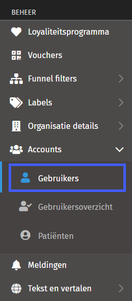 1. Je gaat naar 'Accounts' onder het kopje 'Beheer' en je kiest vervolgens voor 'Gebruikers'.