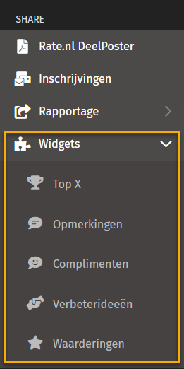 Navigeer naar de widgets in de share sectie van het zijmenu.