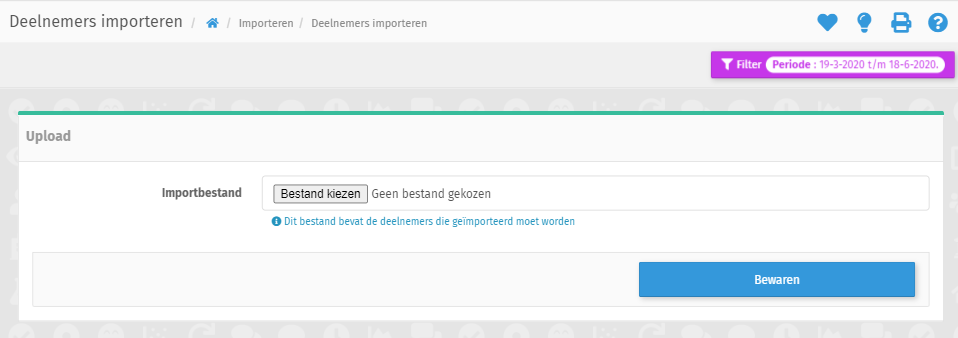 Let op: Je kan alleen deelnemers importeren als je Uitnodiger bent. Ben je dit niet, dan kan je geen deelnemers importeren. Wil je dit toch kunnen of ben jij de persoon in de organisatie die de deelnemers moet importeren, laat het ons weten.